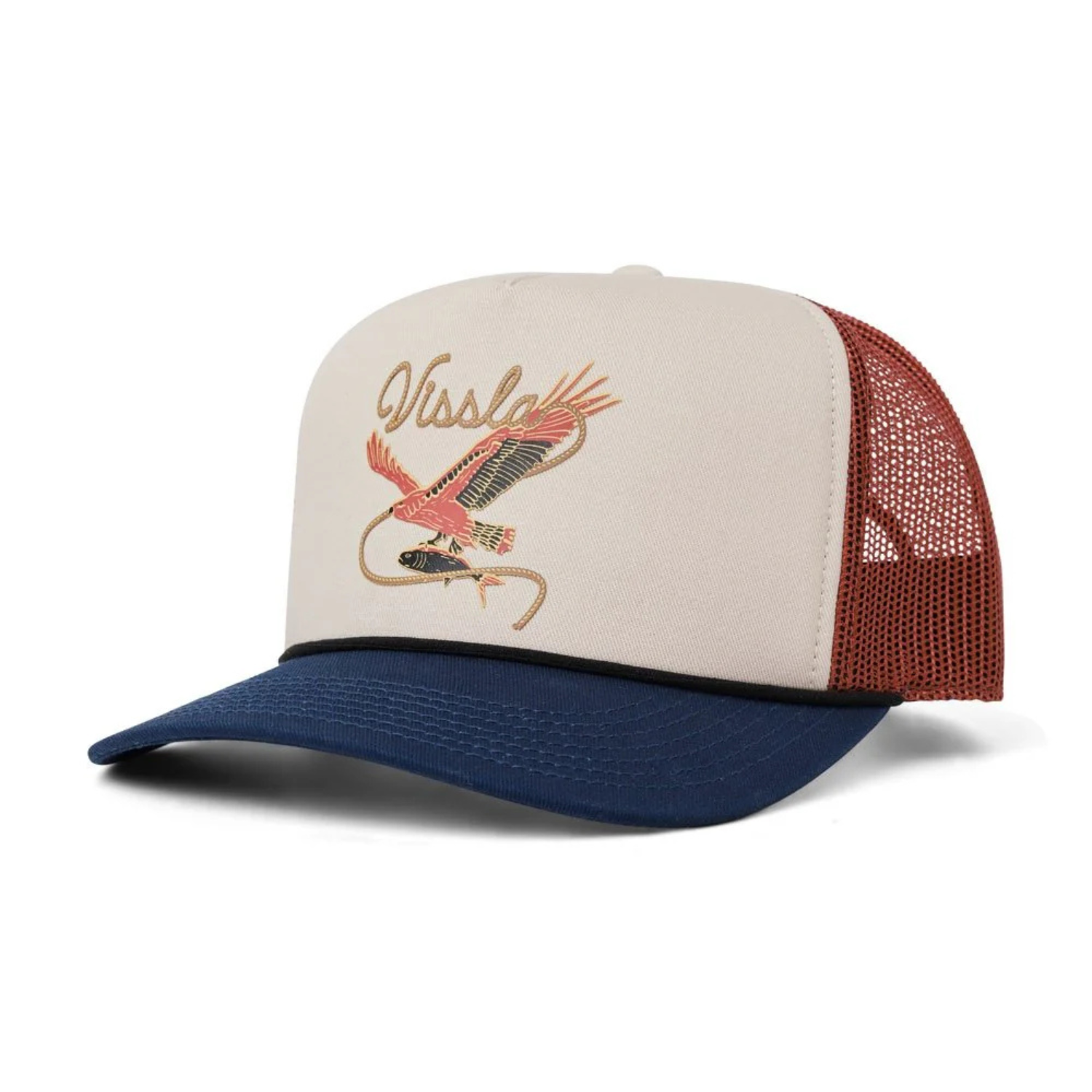 The Vissla Garage Foam Trucker Hat puts a fresh spin on the everyday cap, built with a 50/50 cotton-poly blend for lightweight comfort and a bit of durability. Its front panel makes a statement with bold printed artwork, while the mesh back keeps air moving on hot days. An adjustable snapback delivers a dependable fit, whether you're heading to the beach or putting in hours in the garage. Vissla keeps it simple and functional, just the way a good trucker hat oughta be.