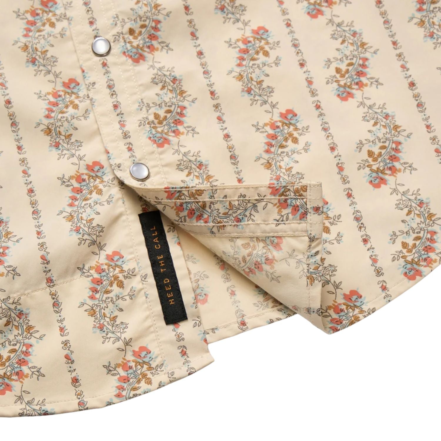 The Howler Brothers Open Country Tech Shirt – Grampa’s Curtains is built for days when you need performance on your side without giving up a classic western look. The lightweight nylon-poly blend dries quick, stretches where it needs to, and holds up through heat and movement. A vented western front and back yoke keep air moving, while recessed chest pockets and a hidden stash pocket at the right side seam provide secure storage without bulk. Pearl snaps keep things easy, and the wrinkle-resistant finish makes it a dependable travel option. Finished with a built-in microfiber cloth at the hem for cleaning sunglasses, this regular fit shirt handles long sun exposure with UPF 35 protection and keeps a clean profile the whole way through.