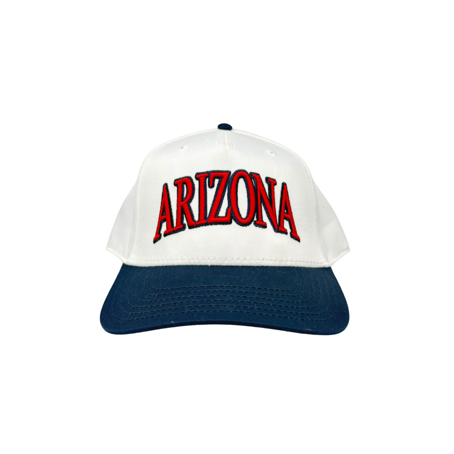 The Arizona Hat keeps school pride front and center with bold embroidery across a structured crown. Built on the OTTO Cap 31-069 5-Panel Mid Profile Baseball Cap, it combines a durable cotton-blend twill build with a contoured fit designed to hold its shape. Available in two colorways—white crown with navy brim and red embroidery, or white crown with maroon brim and gold embroidery—this snapback delivers a timeless look that wears well anywhere.