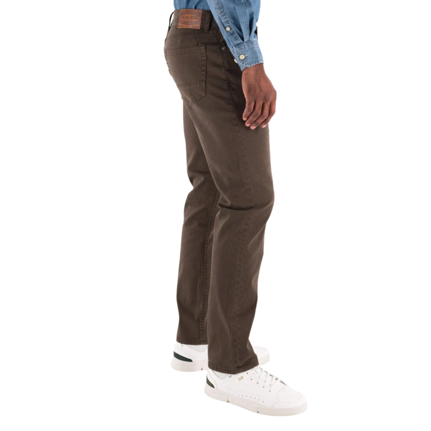 Add a fresh splash of color to your lineup with these garment-dyed denim pants from Devil-Dog®. Built on the same solid foundation as Devil-Dog® jeans, these pants offer the rugged feel you expect with an added touch of versatility. Made to naturally soften and develop character over time, they’re a fantastic alternative to chinos when you want a laid-back yet sharp look. The "Dark Roast" shade brings a rich, earthy tone, enhanced by whiskering and light handsand details for a broken-in vibe. With signature features like the five-pocket layout, zip fly, Devil-Dog® side cording stitch, and bandana-inspired pocket lining, these pants bring a blend of classic styling and modern comfort.