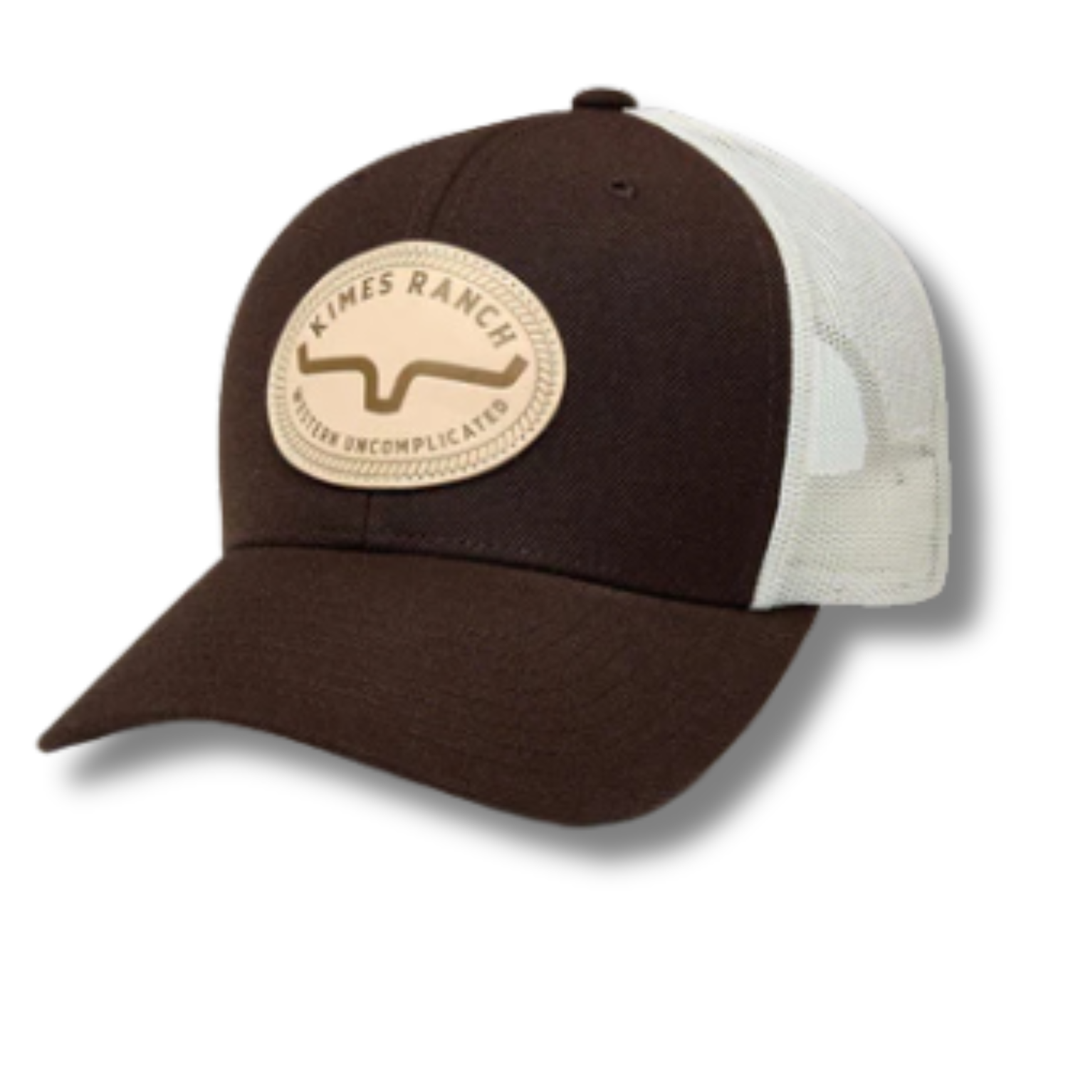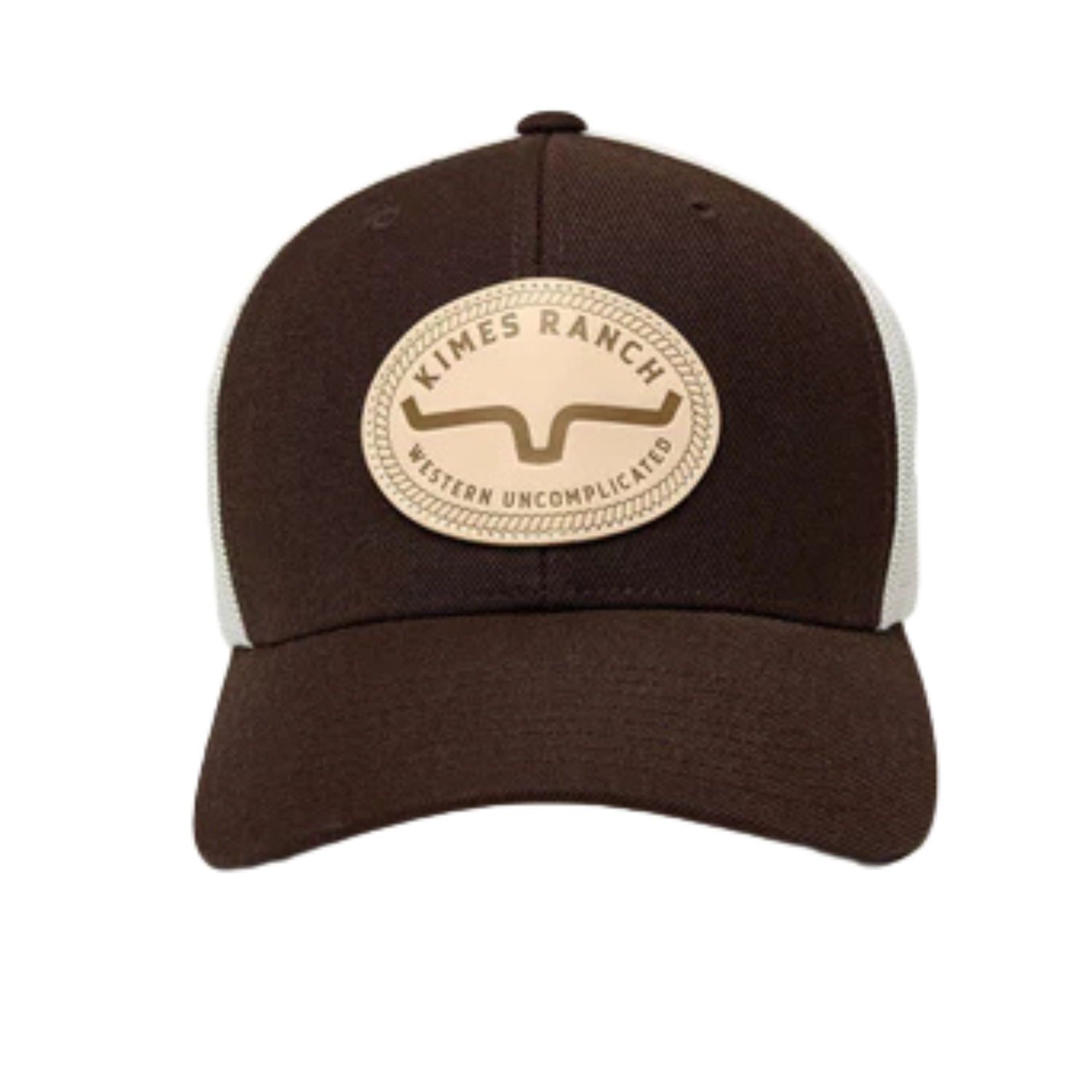 Front Detail: Embossed Leather Kimes Ranch Logo Patch