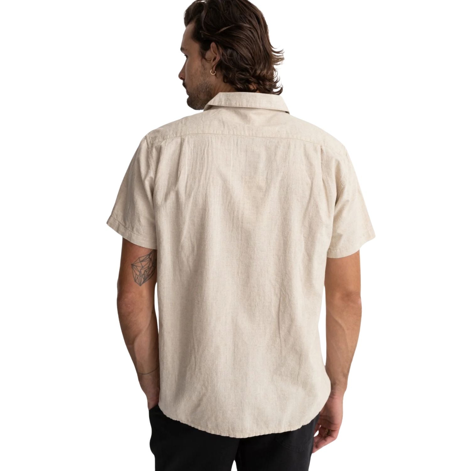 The Rhythm Livin Classic Linen SS Shirt is the kind of short sleeve that earns year-round wear. Built from a breathable 55% linen and 45% cotton blend, it delivers a soft hand feel with the natural airflow linen is known for. The standard fit runs slightly wider with a straight hem, giving it an easy drape whether worn buttoned up or open over a tee. Finished with Rhythm’s signature trims, this shirt is a dependable option for laid-back days that still call for a clean, pulled-together look.