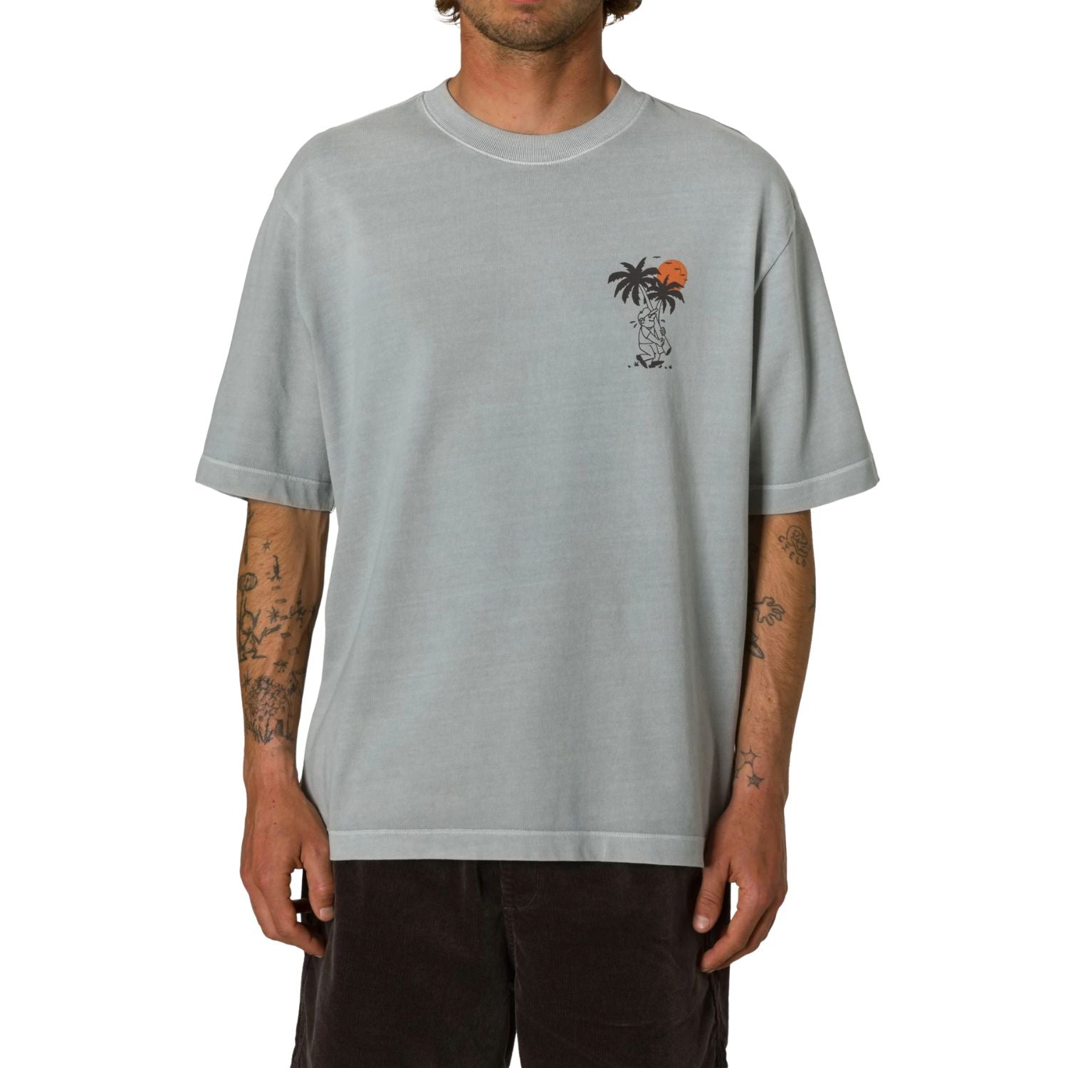 The Katin Delivery Box Fit Tee brings a hand-drawn character graphic inspired by local business artwork, giving it a grounded, everyday appeal. Made from 100% certified organic cotton, it has a soft, breathable feel that holds up through regular wear. The box fit design offers a relaxed, roomy cut with extra space through the body and sleeves, making it comfortable without feeling oversized. A custom dye and wash process adds a worn-in look, and the Katin flag label finishes it off with a clean, understated detail.