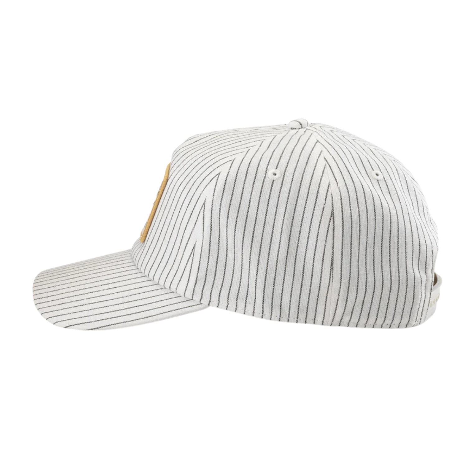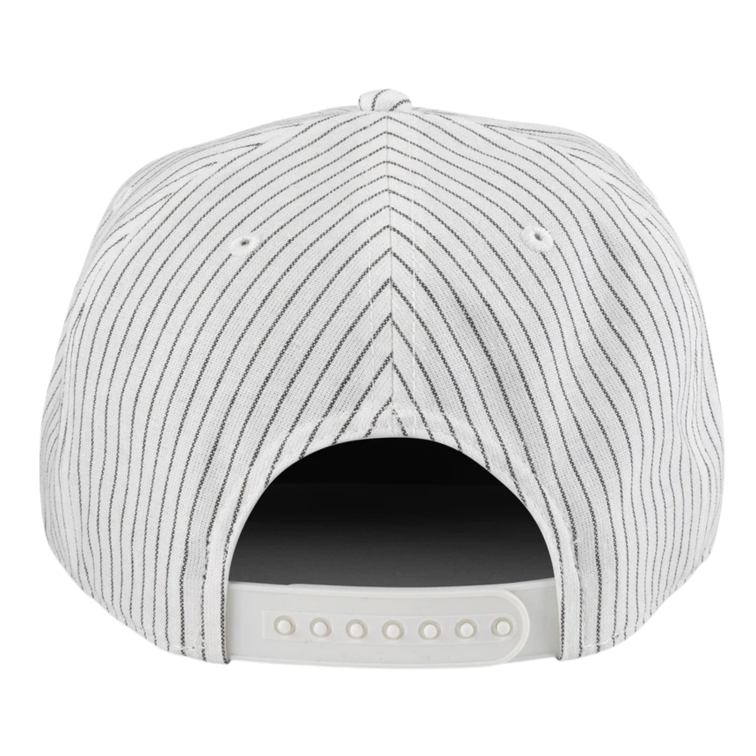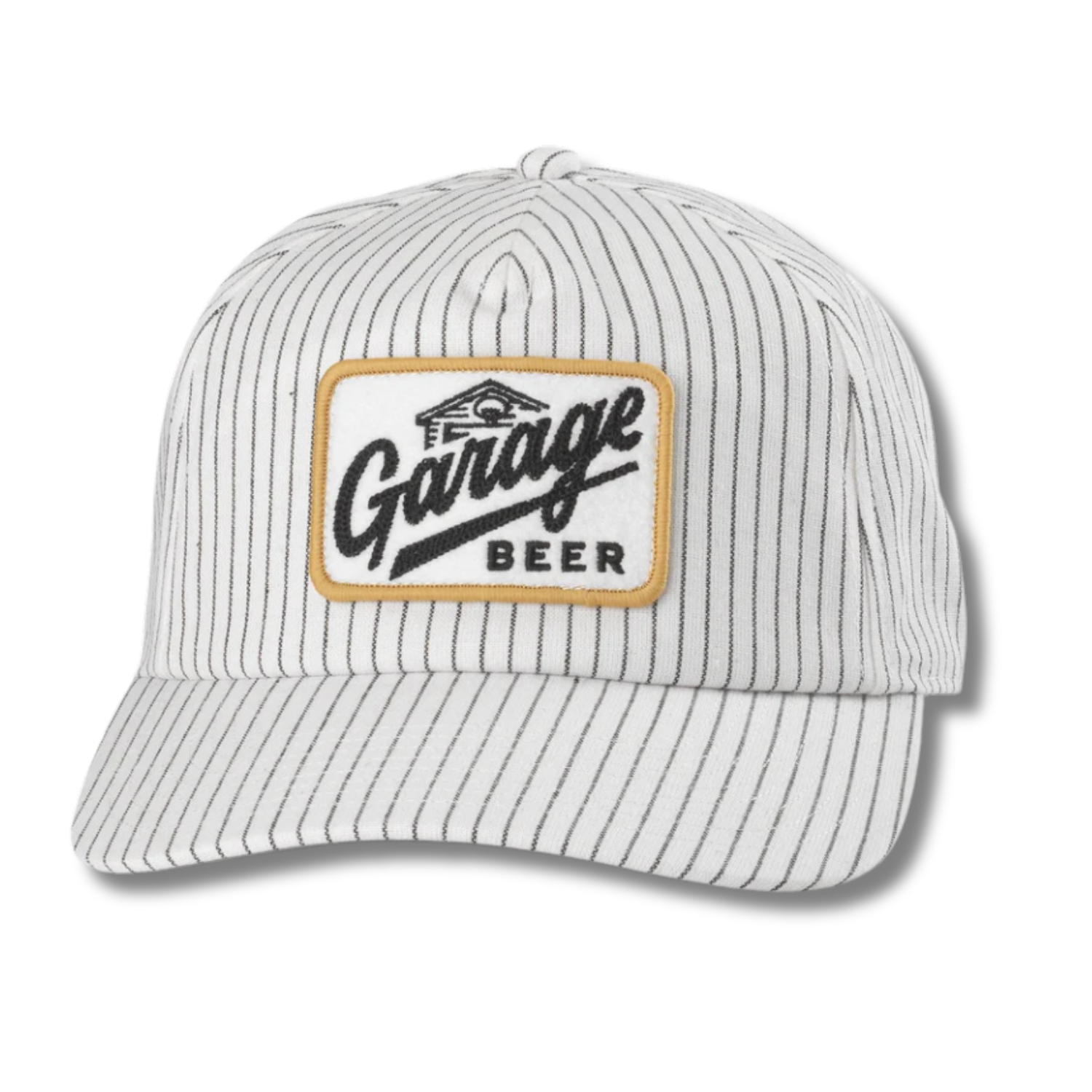 The Garage Beer Tulsa Hat combines a classic pinstripe look with vintage-inspired details. Made from soft 100% cotton, this 5-panel cap features a soft structured crown, slightly curved visor, and an adjustable plastic snap closure for a reliable fit. The soft felt merrowed patch with chain-stitched embroidery on the front gives it a timeless finish that fits right in at work or play.