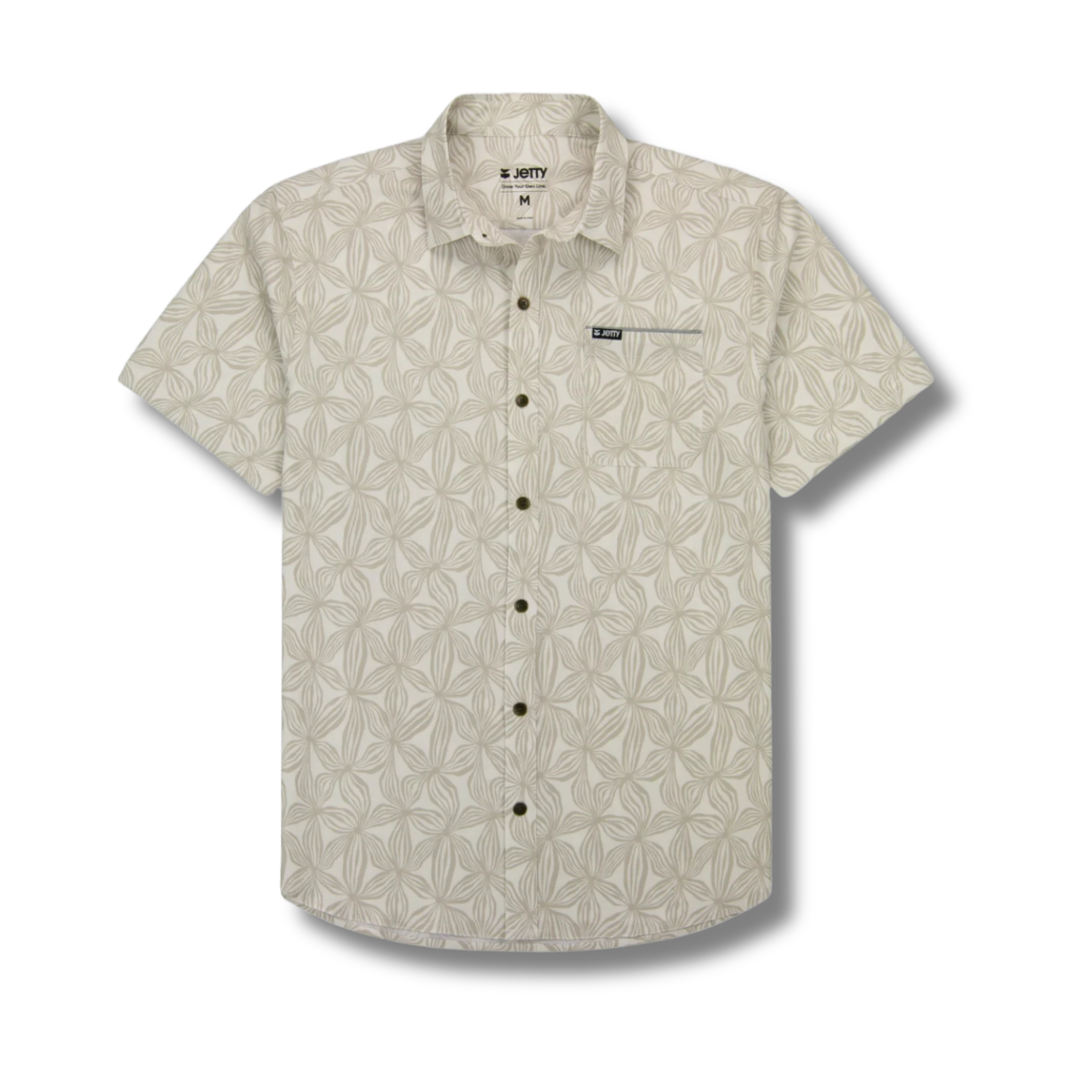 Built with movement in mind and made from recycled materials, this Jetty shirt delivers everyday performance with a polished look. The breathable stretch fabric offers the feel of cotton with added flexibility, making it a go-to whether you’re out on the water or heading into town. Custom Jetty prints and brass buttons bring in signature detail, while the clean neck seam and soft heat transfer label keep things smooth against the skin. Made with Repreve™ recycled polyester sourced from plastic bottles—sustainability never looked this clean.