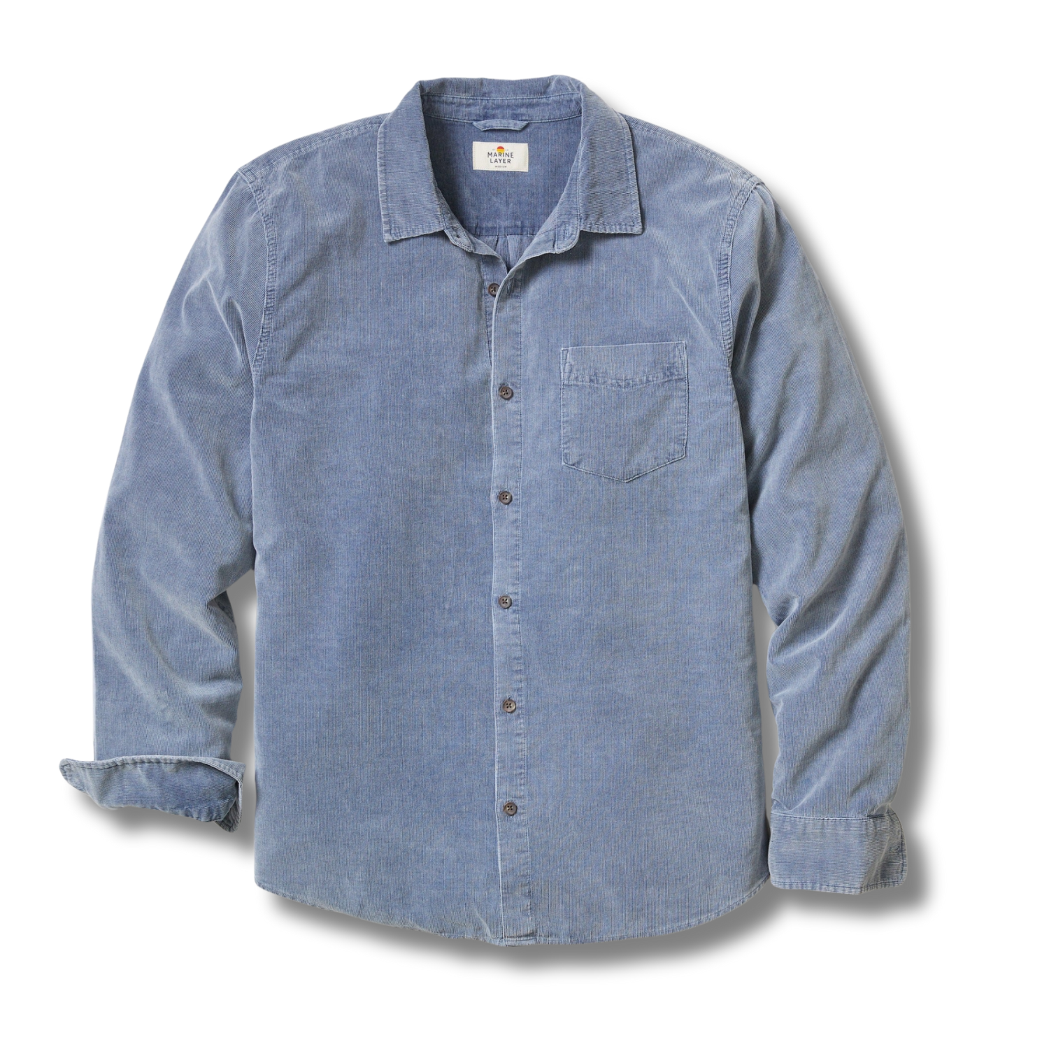 This isn’t your typical corduroy. The Lightweight Corduroy Shirt by Marine Layer delivers the soft feel and textured look you’d expect—but with a breathable, lighter build made for in-between months. Designed with a modern shorter collar, clean pocket stitching, and a classic fit, it’s the kind of shirt that’s easy to throw on whether the forecast leans warm or cool. With a fine 21-wale cord and a special wash for added softness, it’s a layer you’ll reach for season after season.