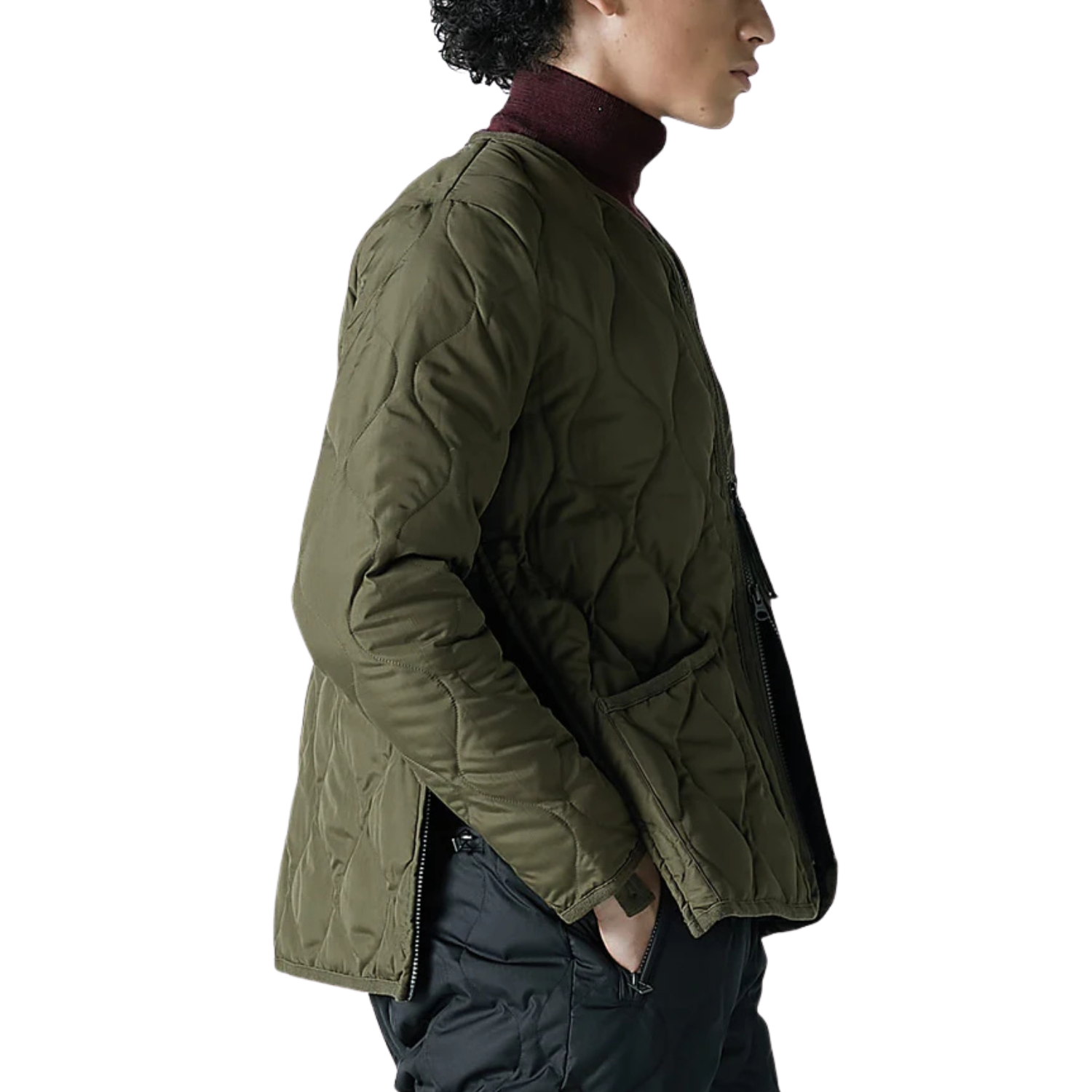 From Taion’s Military Line, the W-Zip V-Neck Down Jacket delivers dependable warmth in a clean, functional build. Constructed with 5mm square ripstop fabric and packed with premium 800 fill-power down, this jacket holds up to daily wear while keeping things lightweight. The onion quilt stitch adds a classic military touch, while the W-zip front and side-zip slits offer flexibility whether you're wearing it on its own or layering. Designed with unisex sizing and built for mobility, this piece is a solid option for transitional weather. Easy to care for and simple to pair with other Military Line gear.