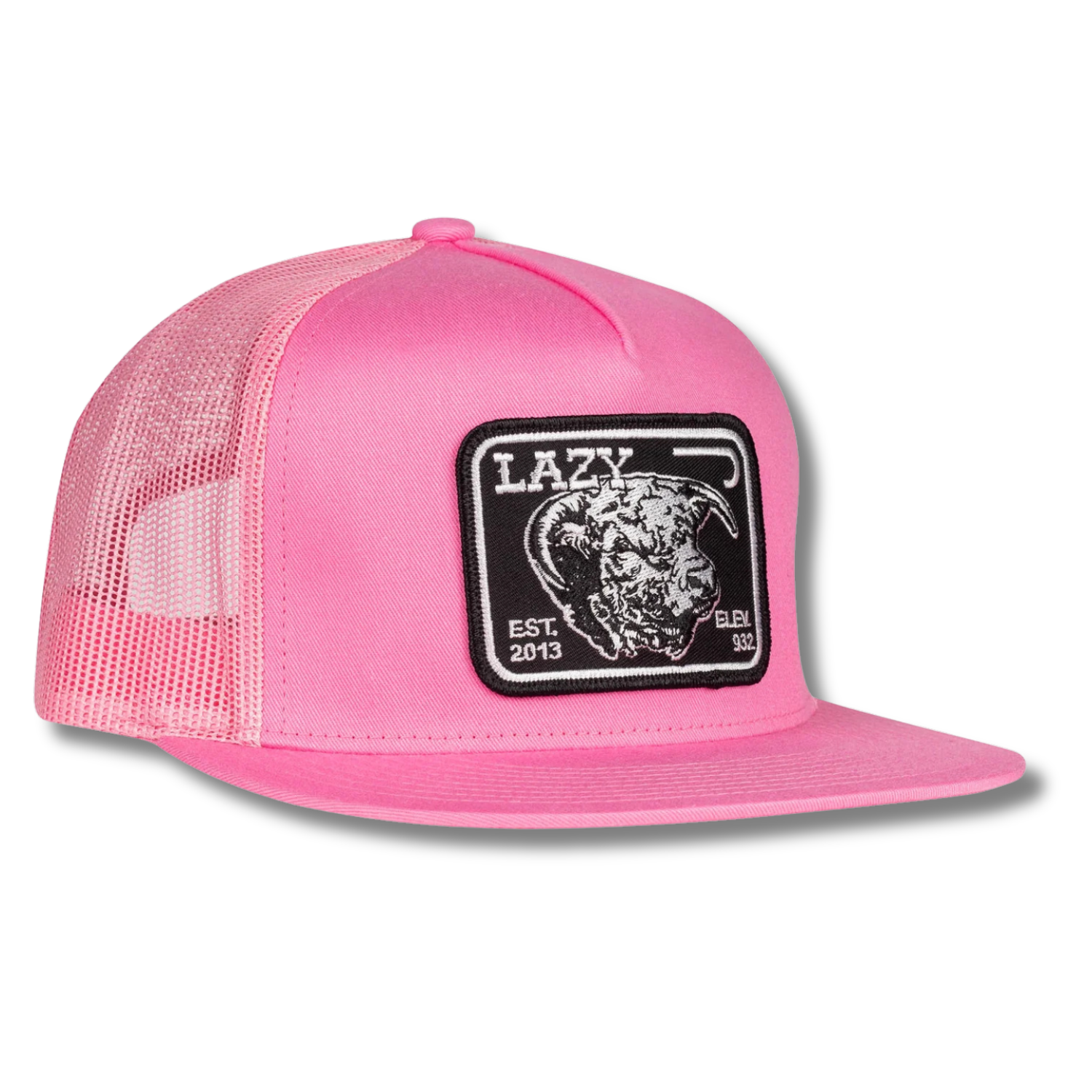 The Lazy J Ranch Pink & Black Elevation Classic Five Panel Trucker Hat combines bold style and practicality for outdoor enthusiasts. Featuring a vibrant pink front paired with a breathable black mesh back, this hat ensures comfort on the go. The "Elevation" graphic adds a touch of adventure to your look, making it perfect for casual outings or active days outdoors. Its structured five-panel design and adjustable snapback closure provide durability and a reliable fit.