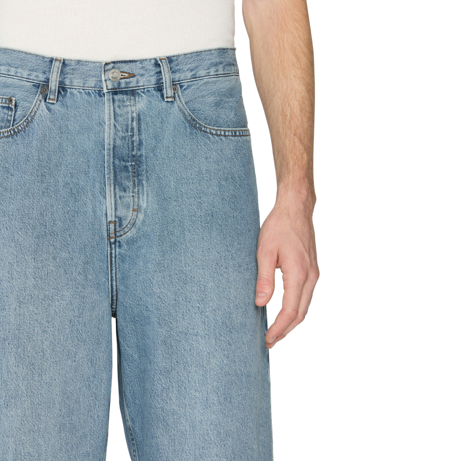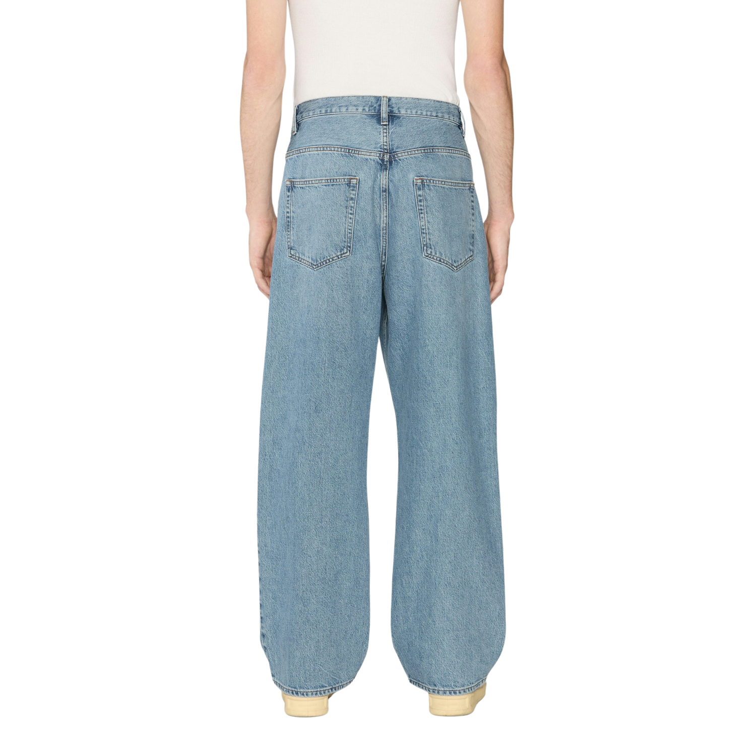 This relaxed denim silhouette blends everyday ease with thoughtful craftsmanship. Made from a mix of regenerative and post-consumer recycled cotton, the fabric offers a soft, broken-in feel from the first wear. Finished in a light blue wash with a worn-in look, this pair is designed for comfort, longevity, and a fit that gets better over time.