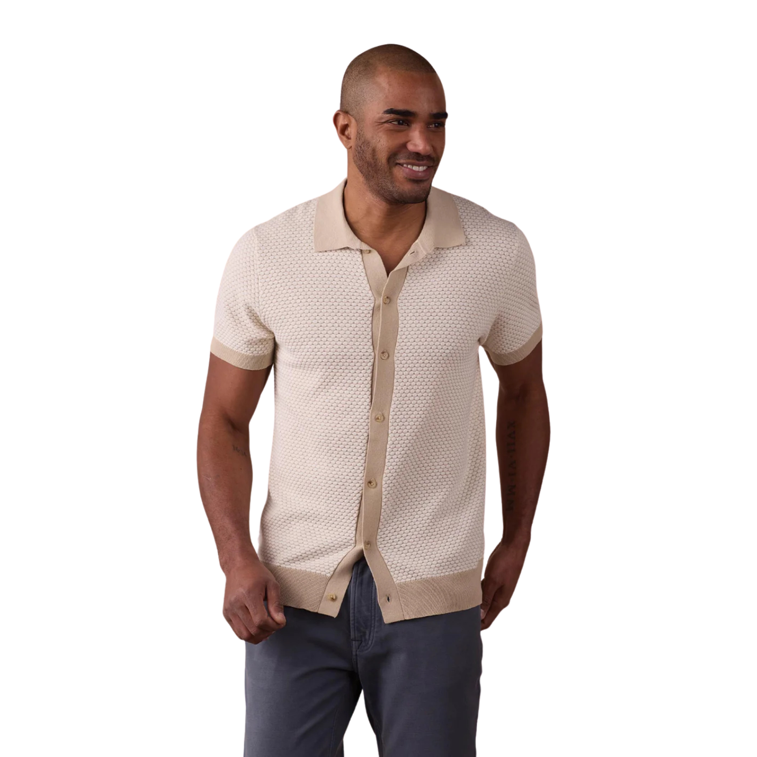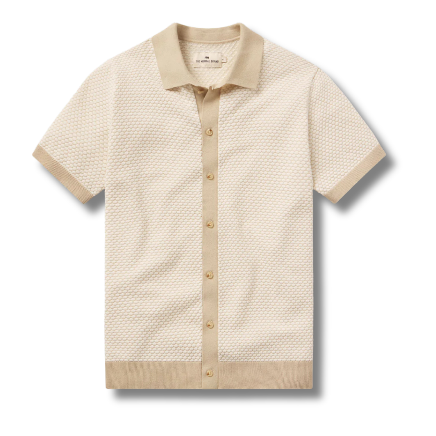The Robles Knit Jacquard Button Up from Normal Brand brings easy comfort and subtle texture to everyday wear. Made from 100% cotton Robles yarn, this lightweight knit shirt offers a classic cotton feel with just a hint of stretch. The two-tone jacquard pattern adds depth without overpowering, while contrast rib details at the collar, placket, cuffs, and hem give it a touch of polish. Marled buttons match the fabric for a clean finish that wears well from day to night.