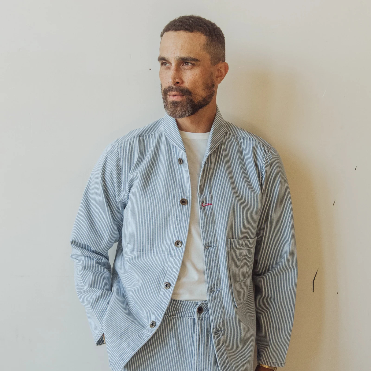 A core piece in the rotation, the Shepherds Shirt in 9.6 oz indigo hickory stripe organic cotton brings time-tested utility with refined finishing. Washed down for softness and a lived-in hand, this signature layer features thoughtful details like a hidden stash pocket, kimono-style side splits, and bound interior seams. The result is a shirt that feels as good as it looks—whether you’re working in it or just living with it. This is one you reach for often, and hang up almost never.