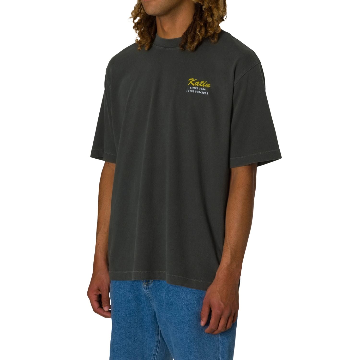 The Katin Sherwin Box Fit Tee carries a bold graphic influenced by local business signage, giving it a grounded, workwear-inspired feel. Made from 100% certified organic cotton, it offers a soft, breathable hand that holds up to daily wear. The box fit cut provides a relaxed, roomy profile with a little extra space through the body and sleeves, making it an easy option for laid-back styling. A custom dye and wash process adds depth to the color, and the Katin flag label finishes it off with a clean detail.