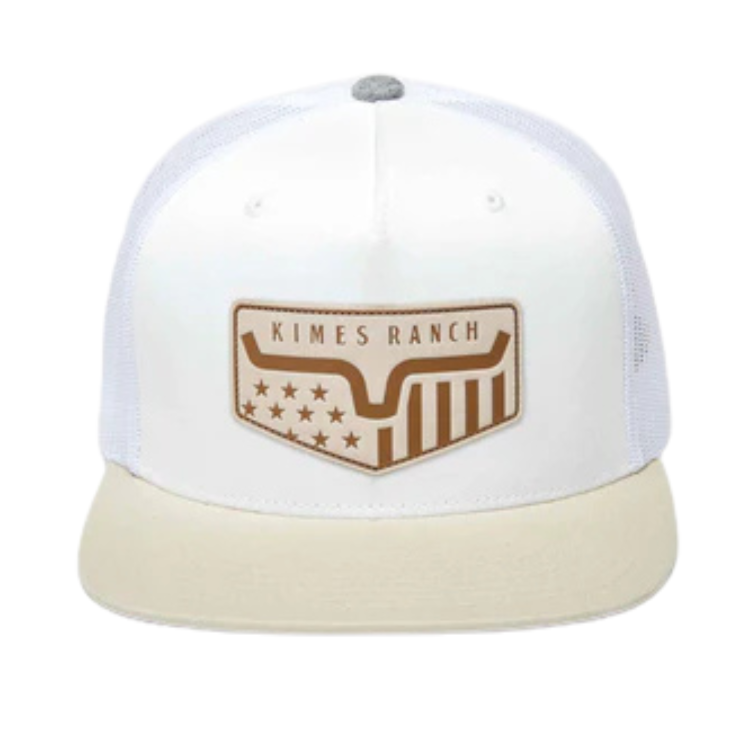 Front Detail: Genuine Leather Patch with Kimes Ranch Logo and Flag Motif