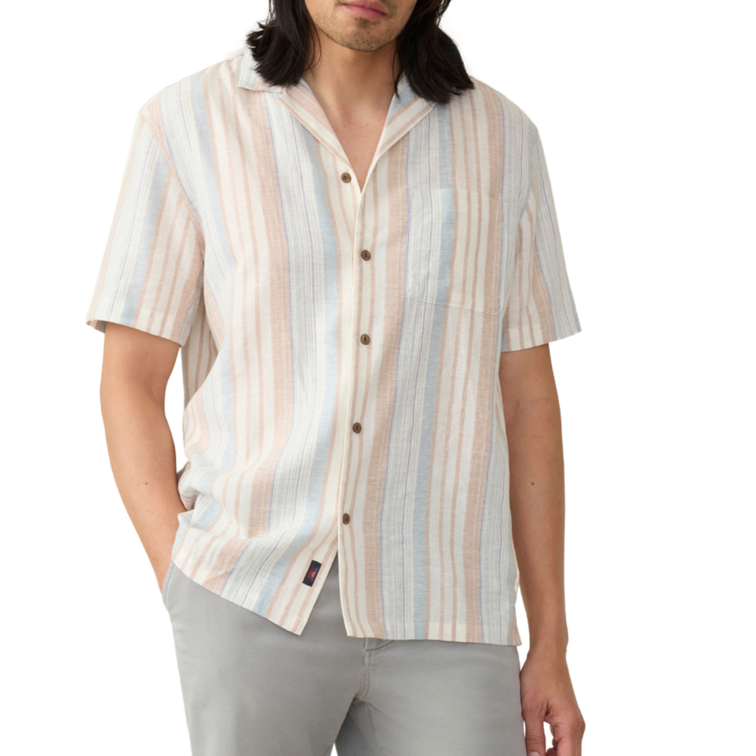 This lightweight, easygoing shirt is made for laid-back summer days. With a relaxed fit and a washed fabric that feels as soft as it looks, it's a warm-weather essential. The cotton-blend material brings breathability, while the camp collar and turnback placket add a casual touch. Whether you're heading to the beach or out for the evening, this shirt keeps things cool and comfortable.
