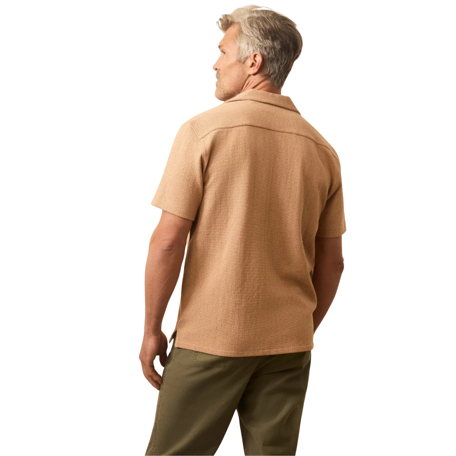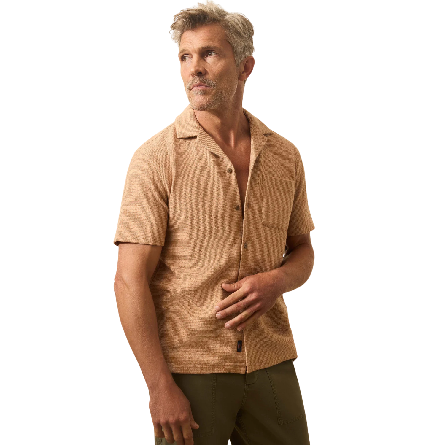 The Short-Sleeve Oasis Shirt blends vintage inspiration with everyday ease. Made from a jacquard fabric of organic cotton and recycled polyester, it offers a textured feel that’s both soft and durable. A camp collar, turnback placket, and chest patch pocket bring in the classic details, while the rust orange color gives it a rich, warm character. Designed for comfort with a touch of refinement, this shirt works from casual weekends to summer evenings out.