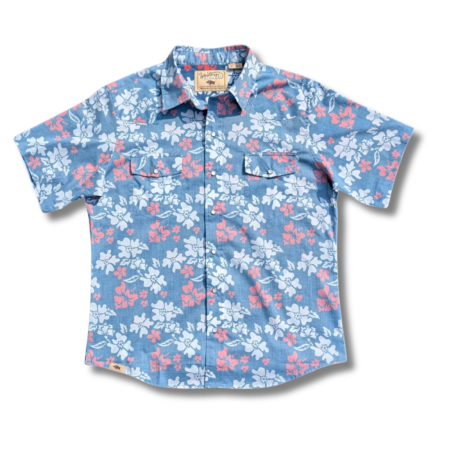 The Western Aloha Tahitian Pareu Shirt blends classic Aloha shirt heritage with a western snap-front build. Made from the brand’s signature Cowboy Cloth, this short-sleeve button-up is lightweight, breathable, and tough enough to handle a full day’s stretch without giving in to wrinkles. Featuring a tailored fit, pearl snaps, and shoulder yokes, it’s a modern take on a timeless island print that first made its way to Hawaii in the 1930s. Built for anything from the coast to the high desert.