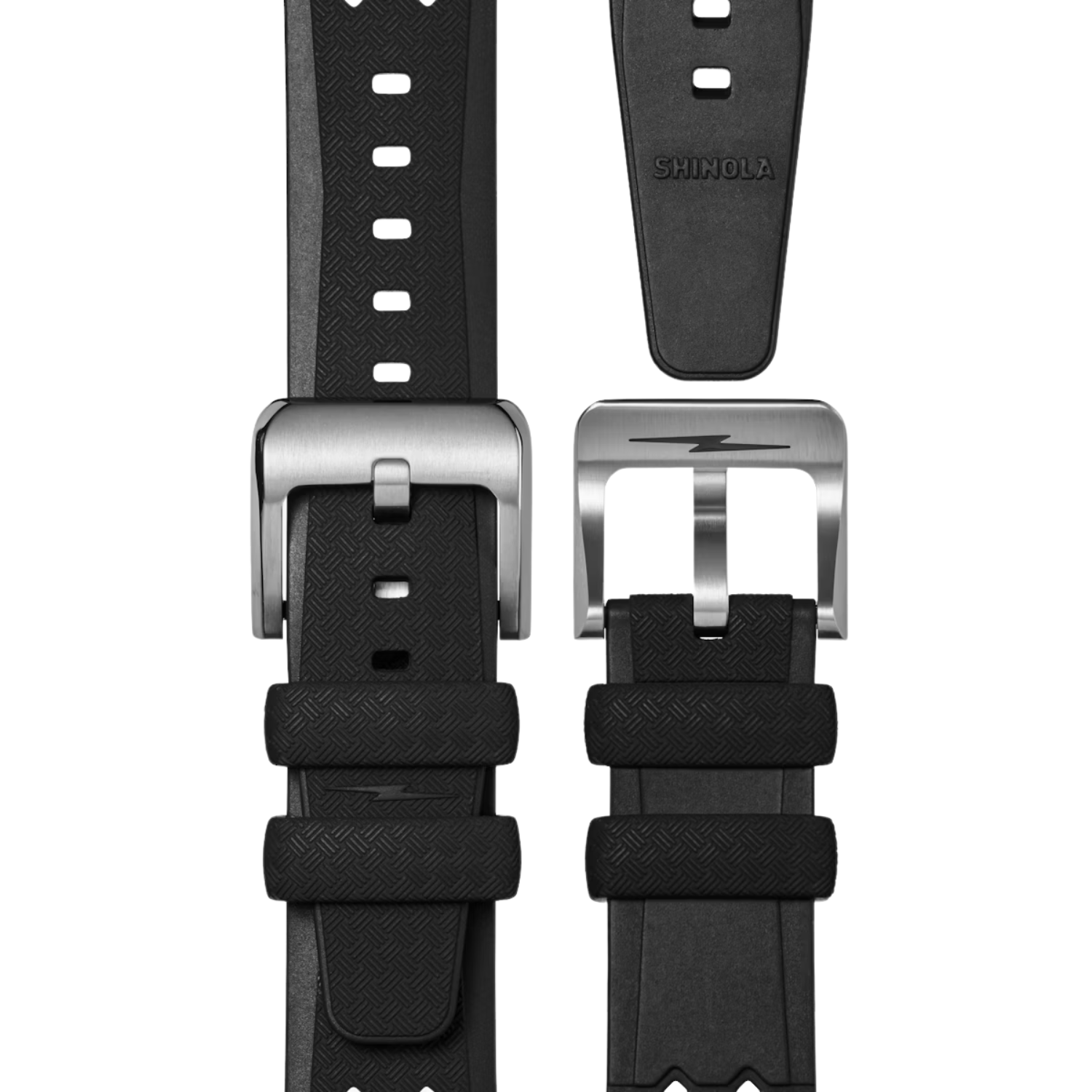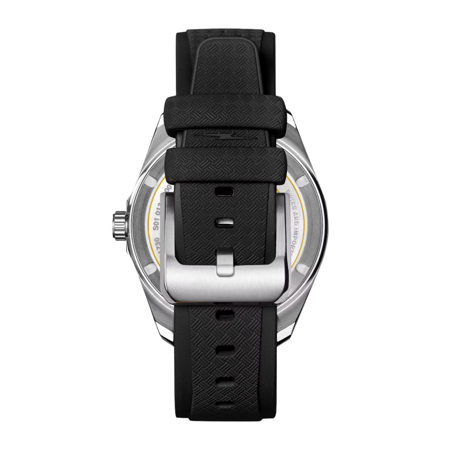 Strap: Black rubber, tropic-style with basketweave texture (115mm x 75mm)