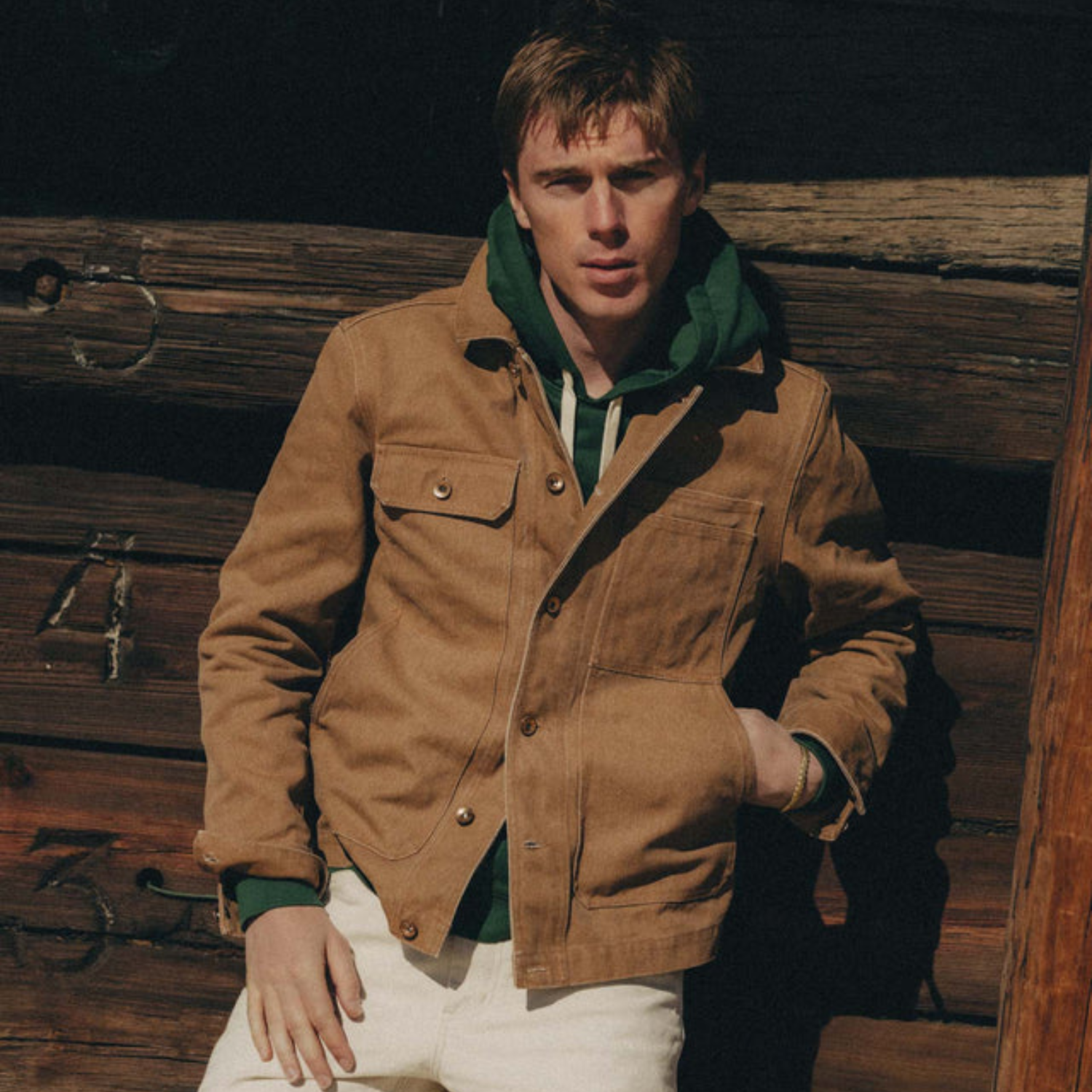 The Longshore Jacket from Taylor Stitch is made to handle tough days while breaking in with character over time. Double dyed and stone washed for a worn-in feel, it carries a solid hand without feeling stiff. Details like engineer style cuffs, antique copper donut buttons, and reinforced construction give it the durability you want in a work layer, with enough refinement to wear off the clock. Unlined and dependable, it’s a piece built to earn its keep year after year.