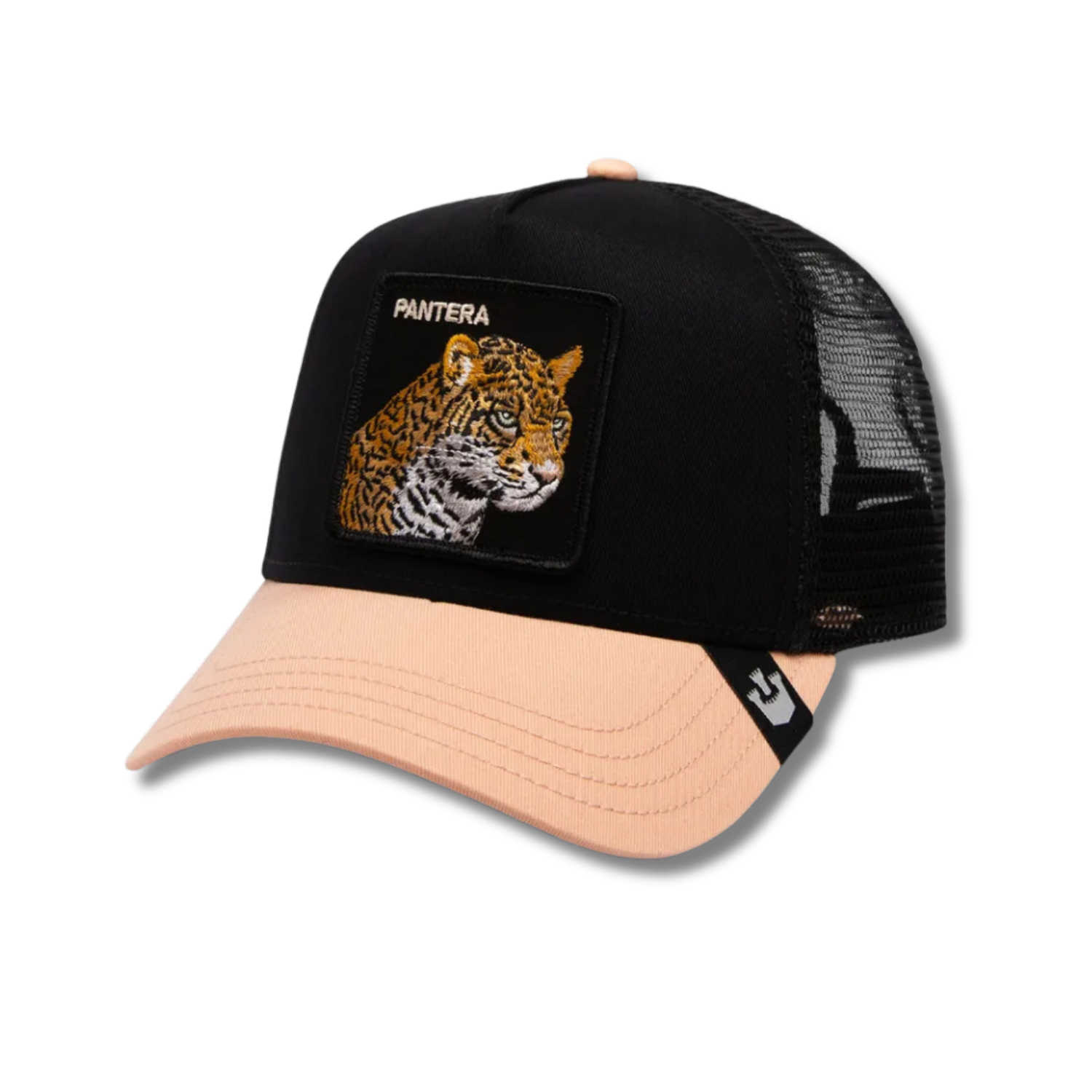 Unleash your wild side with the Goorin Bros. Pantera Trucker Hat. This striking hat features a fierce embroidered panther patch on the front, perfect for making a bold statement. The black and beige color combination adds a stylish contrast, while the breathable mesh back keeps you cool. Made from a durable blend of polyester and cotton, this hat is both comfortable and rugged, with an adjustable snapback strap for a perfect fit.