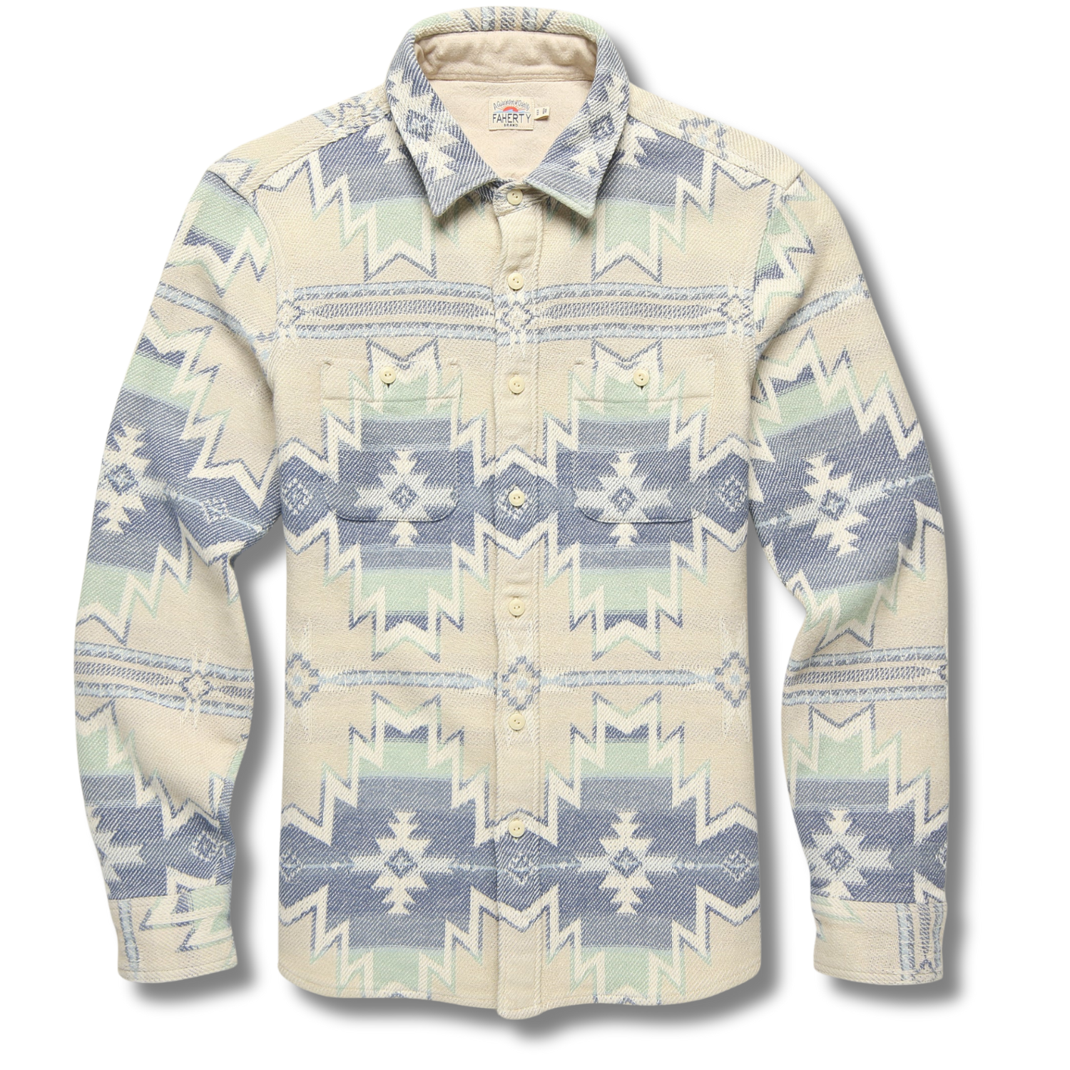 The Surf Flannel from Faherty Brand offers a lightweight, airy feel, crafted from 100% organic cotton. Designed in collaboration with Doug Good Feather of the Lakota Nation, this flannel features a Native-inspired pattern that adds a unique touch. Built for versatility, it’s easy to layer with its relaxed fit, classic spread collar, and straight-cut hem. Durable double-needle top-stitching and dual chest pockets add both style and functionality to this casual staple.