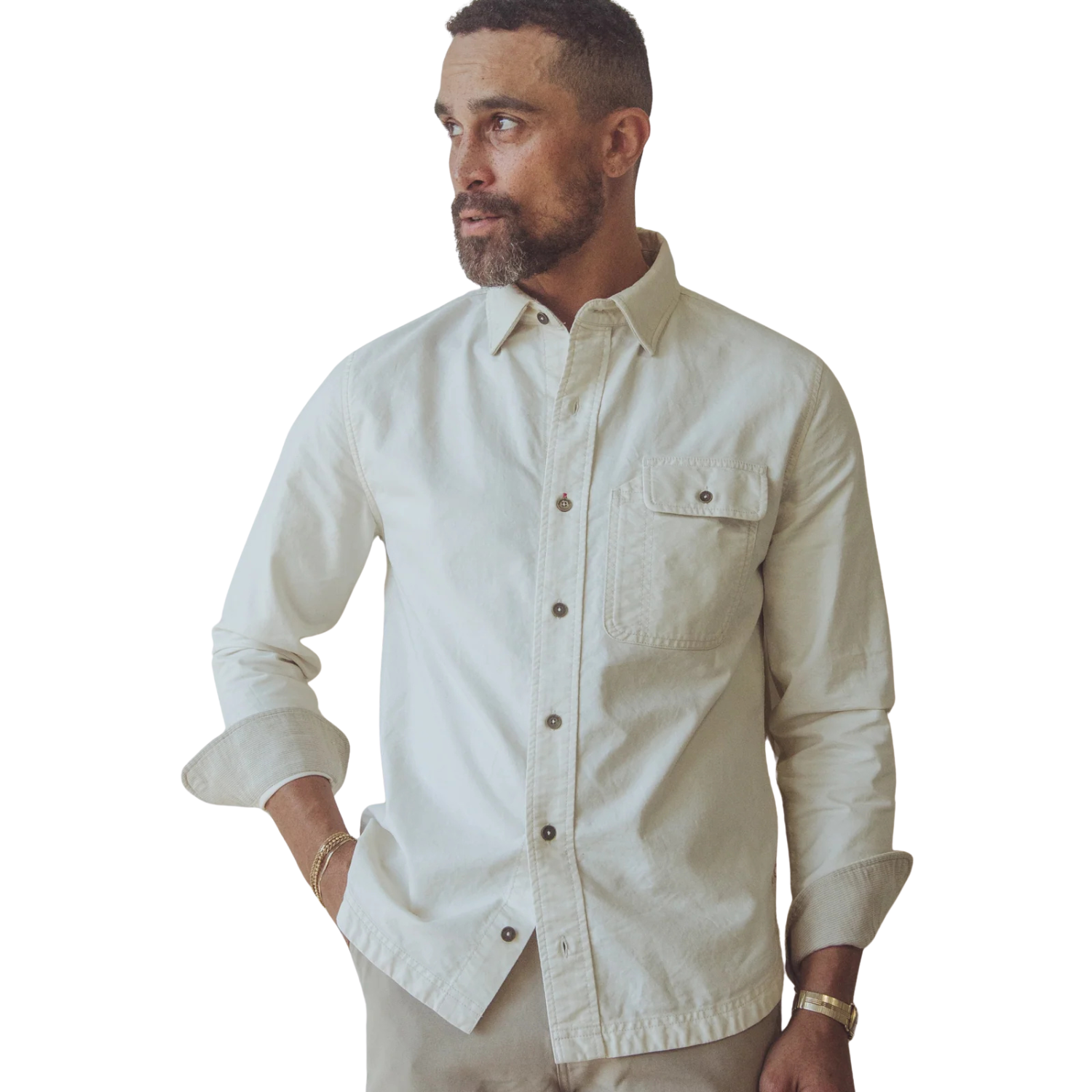 Built for the everyday craftsman, the Tradesman Button-Down blends classic oxford heritage with smart, functional detailing. Woven from a 5.3 oz organic cotton that’s been washed to a soft, broken-in finish, this shirt balances structure with ease. Inspired by the mechanics and makers who once filled the brand’s Voltaire Street HQ, it’s a piece you can roll your sleeves up in—literally. Contrast Summer Cloth trims, a dual-entry chest pocket, and reinforced mobility features make this more than your average button-down—it’s your next go-to workhorse.