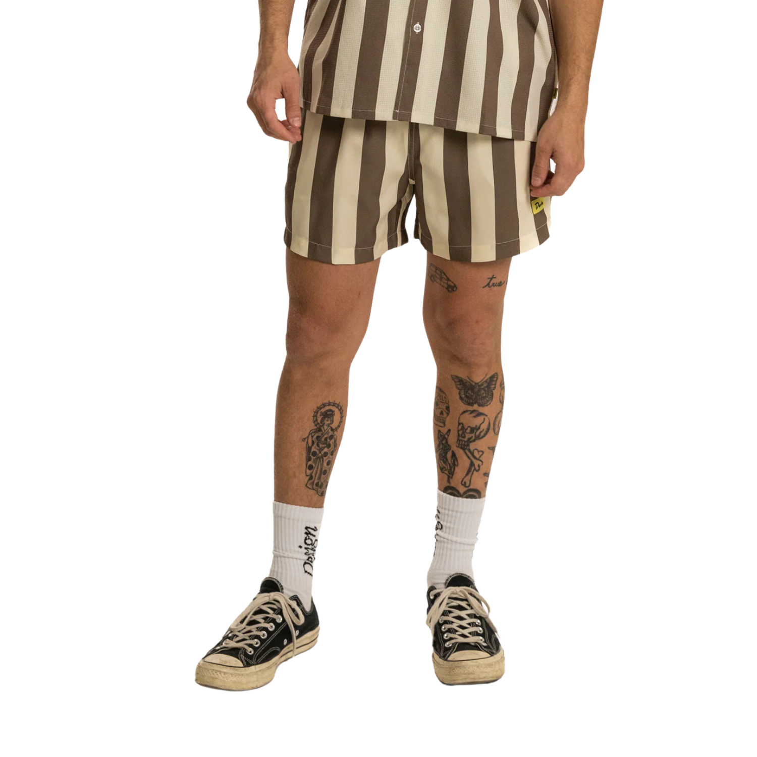 Duvin's Travel Swim Shorts are built for sun-soaked ease and all-day comfort. With a relaxed, wide-leg fit and a soft boxer-brief liner, these trunks bring the comfort of lounge gear to the beach. They're made from lightweight 100% polyester and feature a tearaway size tag that won’t irritate your waist. Side slits add freedom of movement, while the Velcro back pocket—with a drain hole—keeps essentials secure without holding water. Finished with a woven Duvin label up front, these are easy-going swim trunks with everyday appeal. If you prefer a longer fit, consider going up a size.